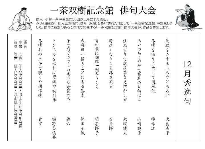 一茶双樹記念館 俳句大会12月秀逸句